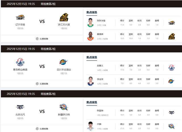 2025年12月15日 00:00 篮球新闻 24直播网