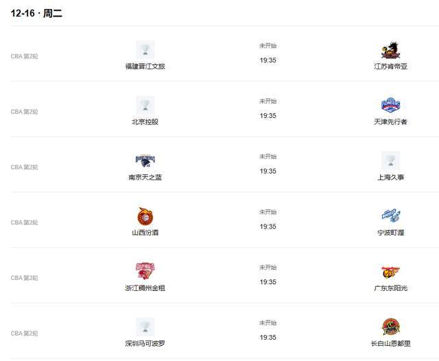 第二轮比赛将会在12月15日和16日进行,其中焦点赛事有,15日晚上,辽宁男篮主场迎战广厦男篮,这绝对是总冠军级别的较量,不容错过。北京男篮坐镇主场迎战新疆男篮,看赵睿对付老东家了。16日晚上,值得关注的比赛有南京同曦回到主场对阵上海男篮,看看郭昊文是否还能如此勇猛。浙江男篮坐镇主场迎战广东男篮,丁伟力拼首胜了。